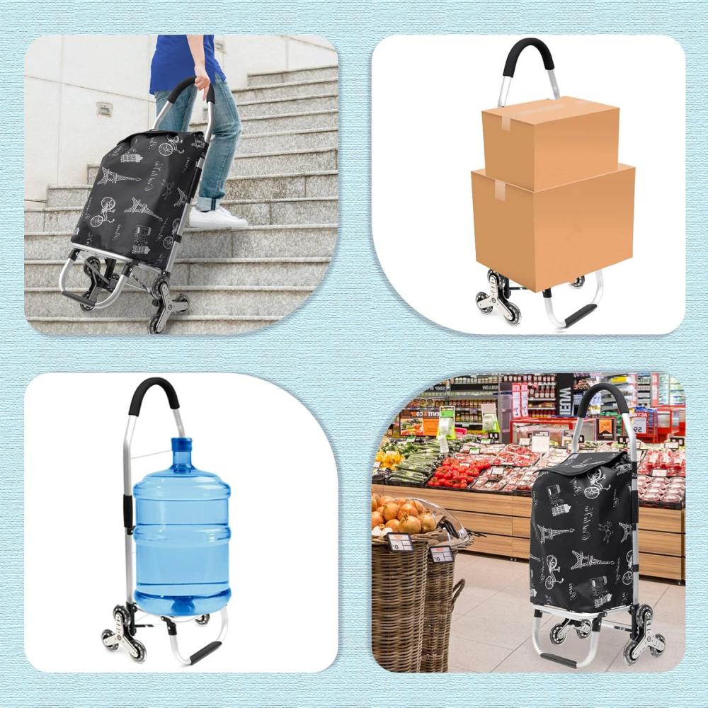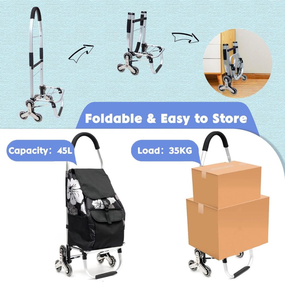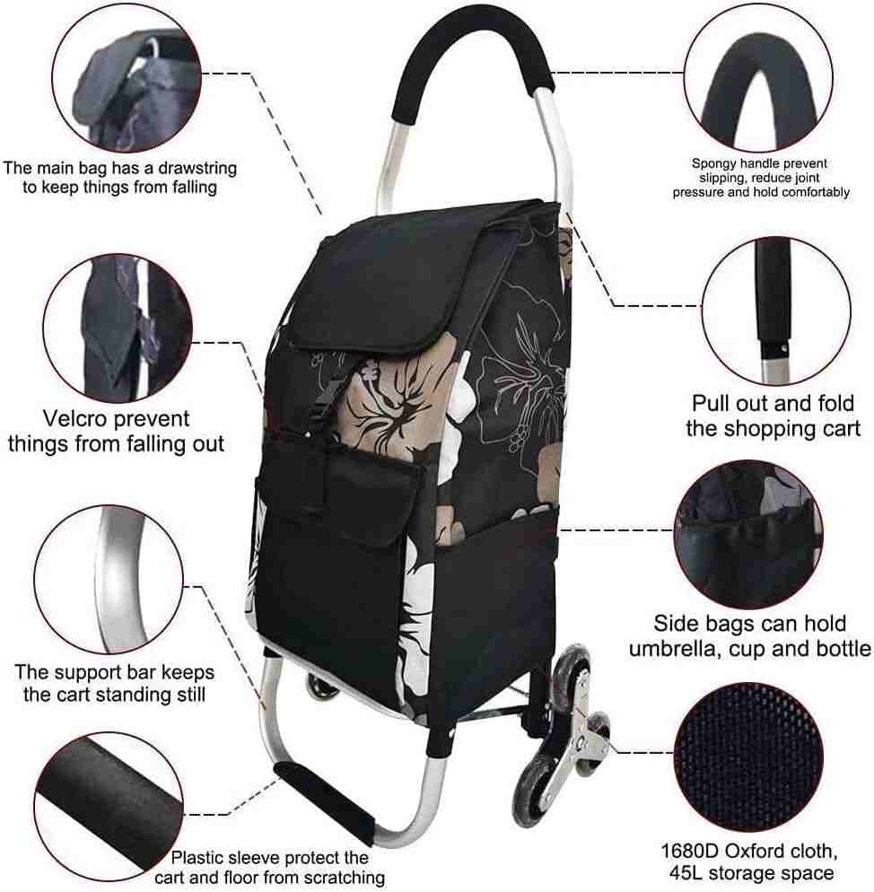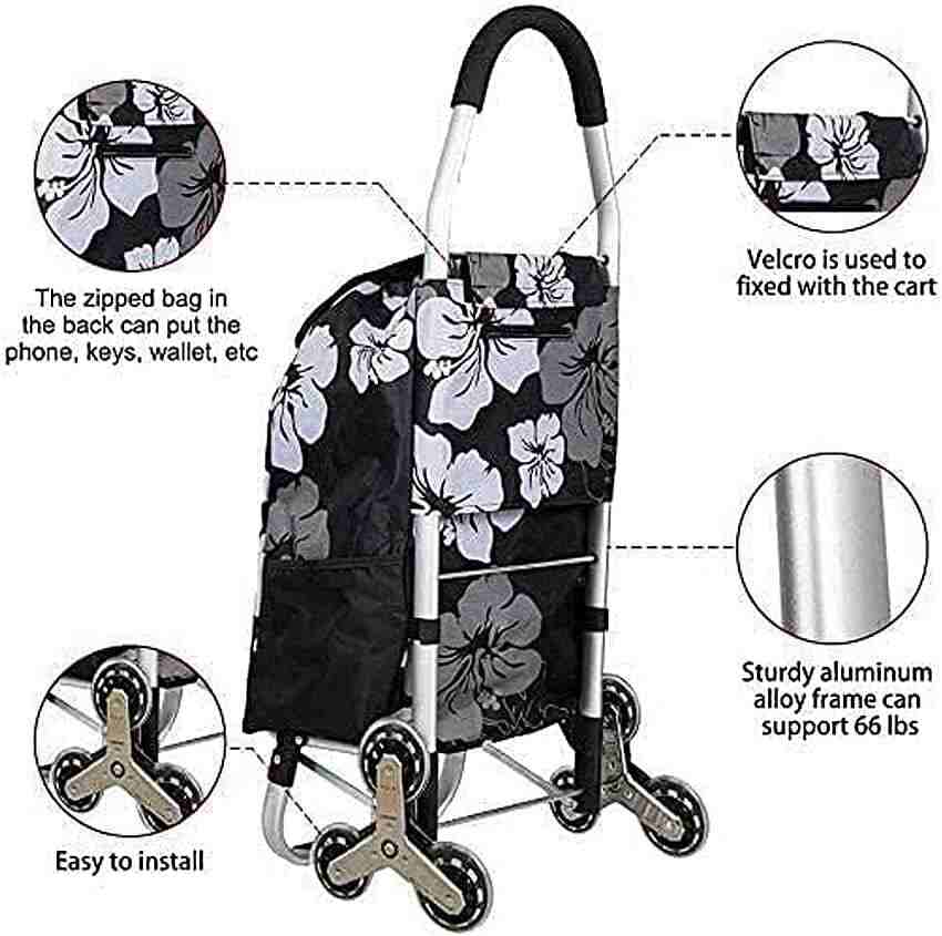 Carrello spesa 3 Ruota per scale con robusto telaio in alluminio e borsa in tela impermeabile rimovibile ideale per lo shopping comodo e pratico D016A