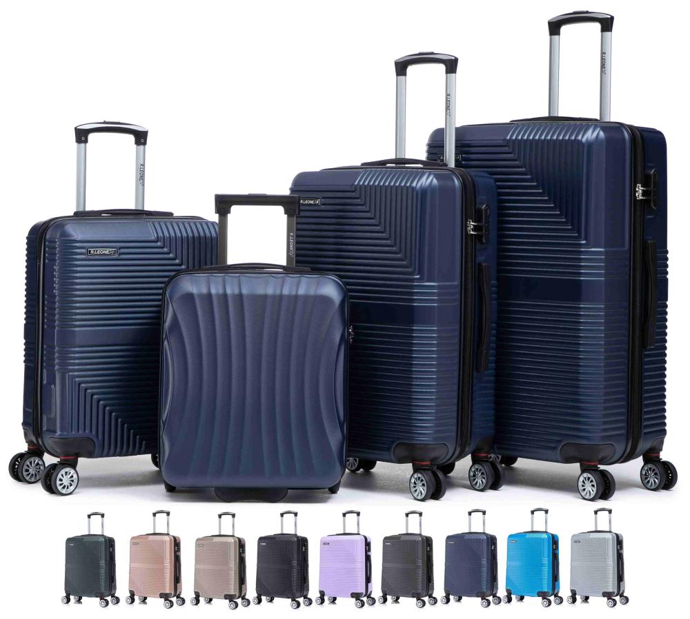 R.Leone Valigia da 1 Fino a Set 4 Trolley Rigido grande, medio, bagaglio a mano 55x40x23 cm Wizz, ITA Airways e bagaglio 45x36x20 cm EasyJet in ABS 8005