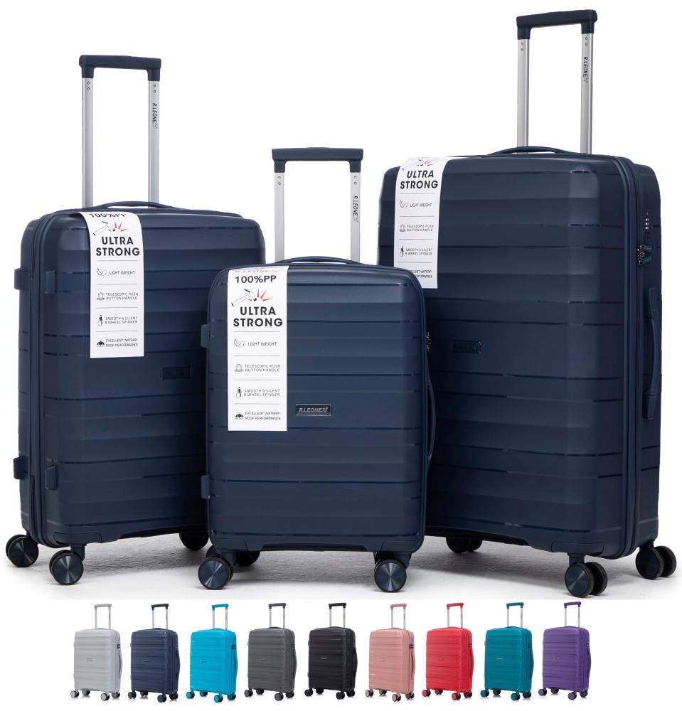 R.Leone Valigia da 1 Fino a Set 3 Bagaglio a mano 55x40x20 Ryanair, Medio, Grande Ultra Strong Antiurto Resistente Trolley rigido leggero 8 ruote in Polipropilene 9180