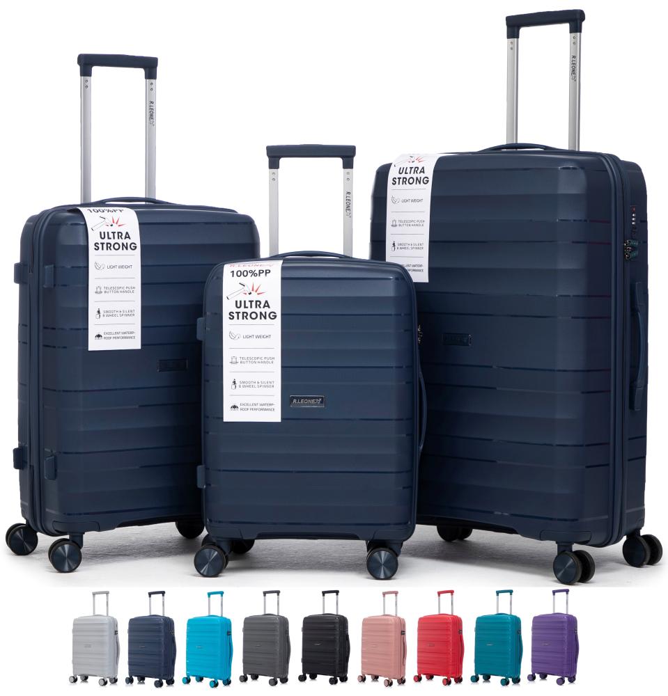 R.Leone Valigia da 1 pezzo Fino a Set 3 Trolley Rigido grande, medio, bagaglio a mano in Polipropilene 8 Ruote Autonome 9180