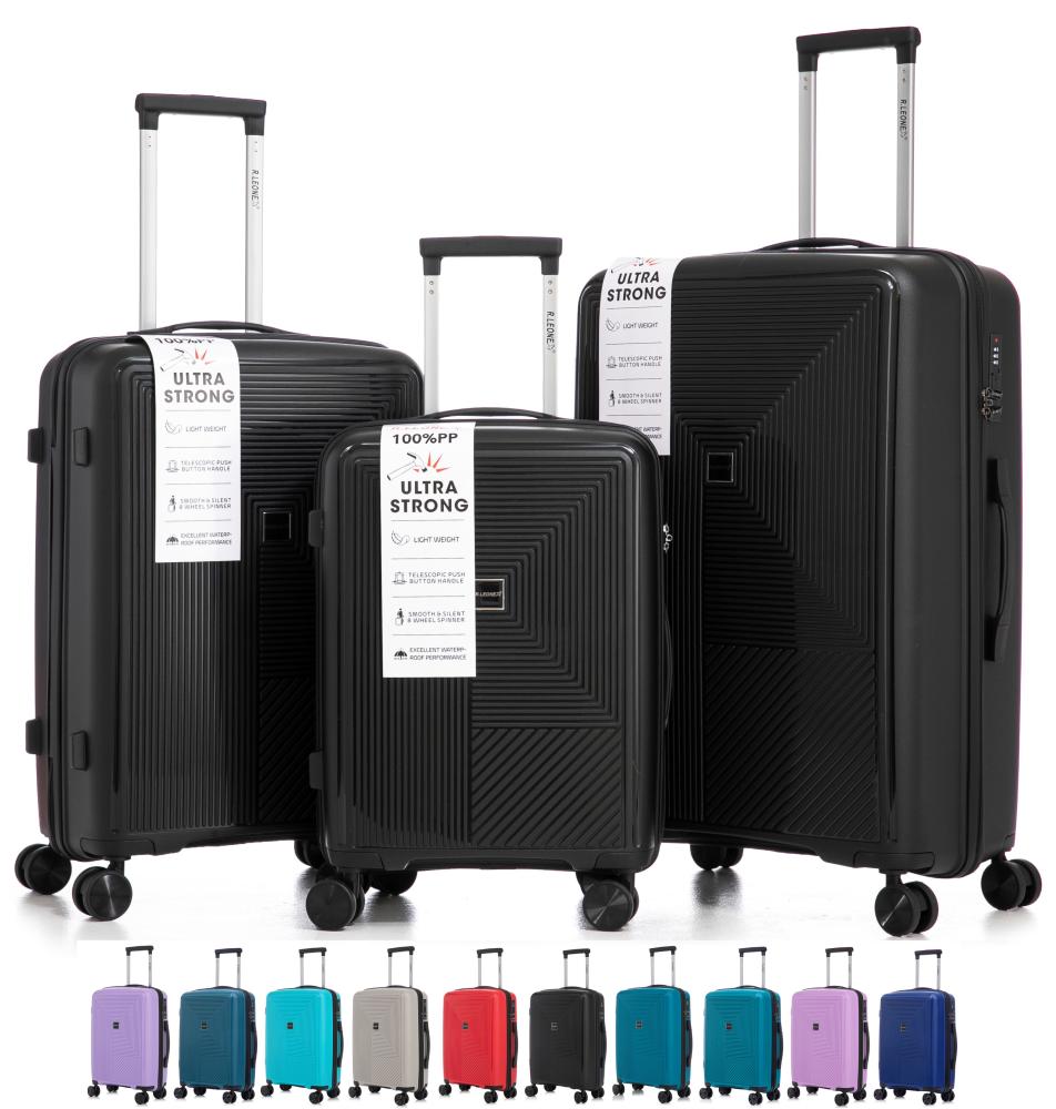 R.Leone Valigia da 1 Fino a Set 3 Bagaglio a mano 55x40x20 Ryanair, Medio, Grande Ultra Strong Antiurto Resistente Trolley rigido leggero 8 ruote in Polipropilene 9188
